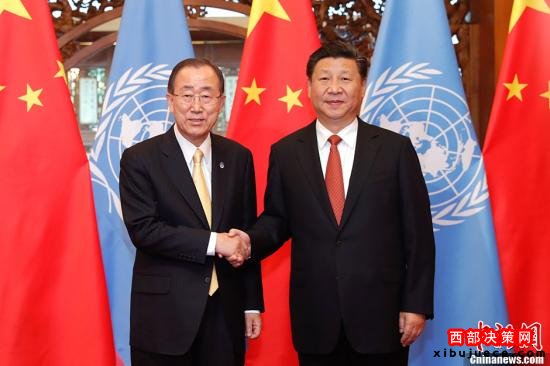 習近平歡迎潘基文出席9月二十國集團領(lǐng)導(dǎo)人杭州峰會。習近平指出,中方高度重視并同聯(lián)合國在發(fā)展和氣候變化等問題上開展了密切合作,取得了重要進展。中方推動二十國集團領(lǐng)導(dǎo)人峰會聚焦發(fā)展問題,推動共建“一帶一路”,就是要助力2030年可持續(xù)發(fā)展議程。中方倡導(dǎo)設(shè)立亞投行,并愿同聯(lián)合國、世界銀行等國際組織加強合作,就是要同世界各國分享中國的發(fā)展機遇。