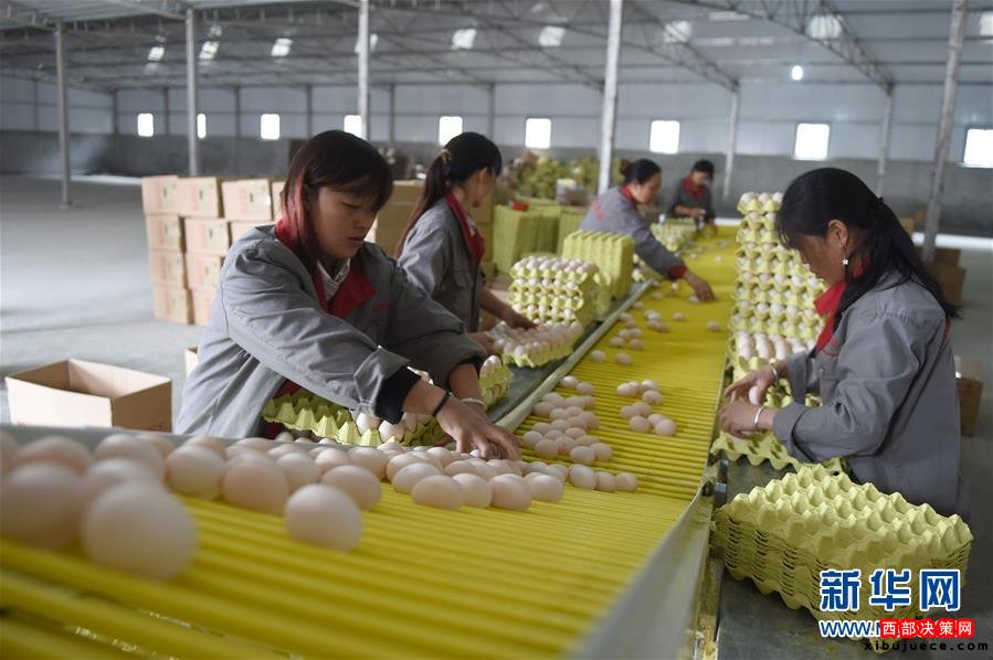 在貴州省畢節(jié)市七星關(guān)區(qū)五里坪村,當(dāng)?shù)剞r(nóng)戶在一個(gè)屬于精準(zhǔn)扶貧項(xiàng)目的養(yǎng)雞場(chǎng)內(nèi)分揀雞蛋(2015年11月15日攝)。畢節(jié)市自2014年開始“私人訂制”式精準(zhǔn)扶貧工作,根據(jù)當(dāng)?shù)刎毨魧?shí)際情況為其制定扶貧方案,扶貧變“輸血”為“造血”。黨的十八大以來,以習(xí)近平同志為總書記的黨中央高瞻遠(yuǎn)矚、深謀遠(yuǎn)慮,以高度的政治感、使命感和責(zé)任感,把扶貧開發(fā)工作提升至治國(guó)理政新高度,廣泛凝聚社會(huì)各界力量,推進(jìn)實(shí)施精準(zhǔn)扶貧方略,為到2020年全面建成小康社會(huì)奠定堅(jiān)實(shí)基礎(chǔ)。按照中央部署,通過產(chǎn)業(yè)扶持、轉(zhuǎn)移就業(yè)、易地搬遷、政策兜底等方式,到2020年將實(shí)現(xiàn)7017萬農(nóng)村貧困人口脫貧目標(biāo)。新華社記者 潘昱龍 攝