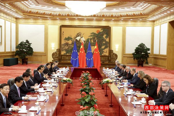 新華網(wǎng)北京7月12日電國務(wù)院總理李克強(qiáng)12日下午與歐洲理事會主席圖斯克、歐盟委員會主席容克共同主持第十八次中國歐盟領(lǐng)導(dǎo)人會晤。雙方就鞏固中歐政治互信、穩(wěn)步落實合作共識、加強(qiáng)國際和地區(qū)事務(wù)中的溝通與協(xié)調(diào)等深入交換意見。(據(jù)新華社“新華視點(diǎn)”微博報道)