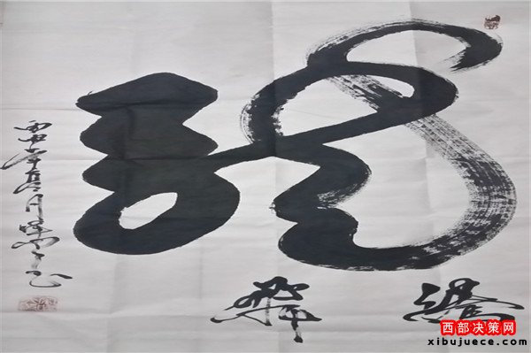 龍乃華人想象中最尊貴、最吉祥之物。生活之中無(wú)所不在,上下五千年,仍一以貫之,舉世無(wú)與倫比。華人更以龍的傳人自居,一旦風(fēng)起云涌,海生駭浪,則龍卷風(fēng)云,霞光萬(wàn)丈。其“一筆龍”書(shū)法作品將書(shū)法和繪畫(huà)非常巧妙的而高度的融合,依易經(jīng)智慧,集意念、氣功為一體,運(yùn)筆如神,酬勁有力,一氣呵成,氣勢(shì)磅礴,形象逼真。整個(gè)字體呈現(xiàn)出一條蒼龍騰躍飛天之勢(shì),寓意了中國(guó)龍騰飛吉祥的福兆,更展現(xiàn)了中華民族不屈不饒的民族精神。