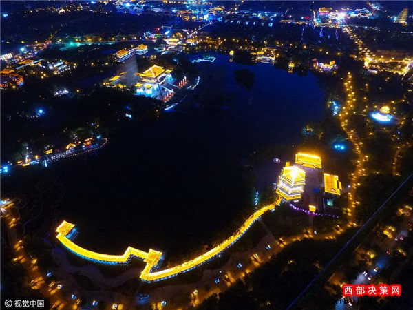 2016年08月30日,陜西省西安市,中央電視臺(tái)中秋晚會(huì)西安大唐芙蓉園分會(huì)場正在緊張布置中。記者從利用無人機(jī),分別航拍到大唐芙蓉園白天與夜晚的壯美風(fēng)景,如同一幅美麗畫卷,等待著中秋佳節(jié)的到來。