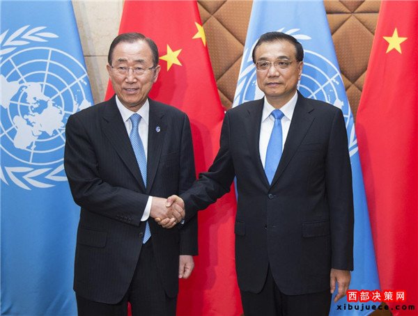 7月8日,國務院總理李克強在北京會見來華訪問的聯(lián)合國秘書長潘基文。