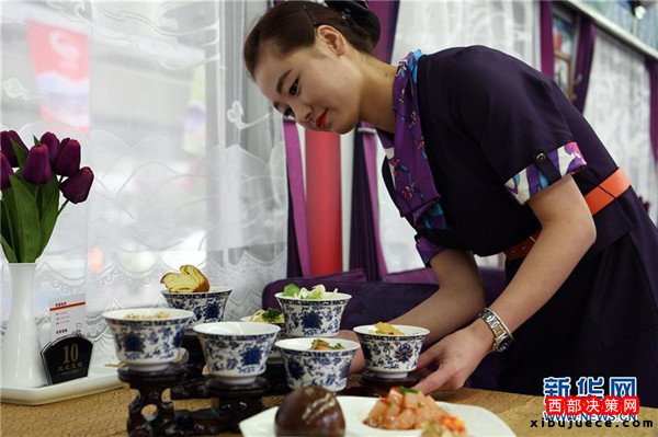 9月27日,“蘭州新區(qū)號(hào)”列車工作人員為旅客準(zhǔn)備蘭州風(fēng)味特色餐食。當(dāng)日,首趟以“蘭州新區(qū)號(hào)”冠名的K861/2次和以“蘭州國際港務(wù)區(qū)號(hào)”冠名的K1042/41次“絲路快車”相繼從蘭州火車站發(fā)車,蘭州鐵路局以“絲路快車”為主題的列車至此已達(dá)23對(duì)。據(jù)了解,“絲路快車”創(chuàng)新鐵路客運(yùn)供給與服務(wù),在普通旅客列車的基礎(chǔ)上,提升改造列車硬件設(shè)施,營造列車絲路文化氛圍,提高列車員服務(wù)水平,帶給旅客全新出行體驗(yàn)和服務(wù)。