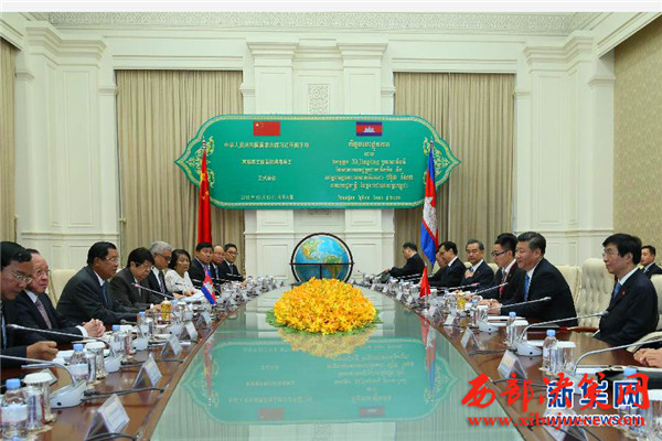 兩國領(lǐng)導(dǎo)人一致決定鞏固中柬傳統(tǒng)友好,大力推動(dòng)全面戰(zhàn)略合作,讓兩國繼續(xù)做高度互信的好朋友、肝膽相照的好伙伴、休戚相關(guān)的命運(yùn)共同體。