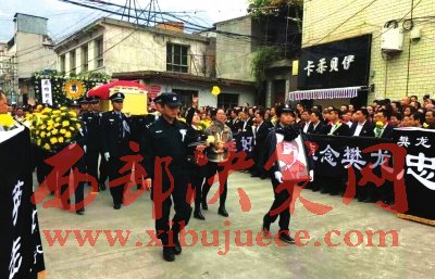 25日晚上,樊龍的遺體告別儀式在武都區(qū)公安局巡警大隊(duì)大院舉行。省公安廳派人專(zhuān)程為樊龍送行,隴南市、武都區(qū)公安民警代表及隴南市、區(qū)有關(guān)單位領(lǐng)導(dǎo)、職工、各界群眾代表、樊龍生前親朋好友,當(dāng)?shù)厥忻窦娂娮园l(fā)趕來(lái)參加遺體告別儀式,挽聯(lián)和花圈擺滿(mǎn)了巡警大隊(duì)的院子。