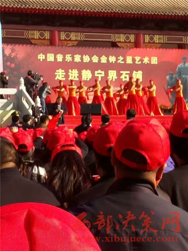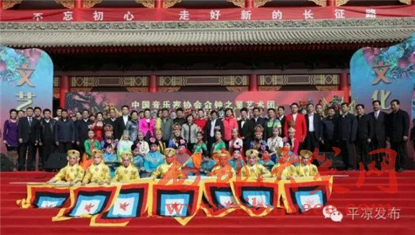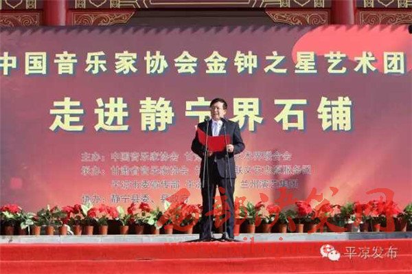 11月3日,在全國上下認真學習貫徹黨的十八屆六中全會精神、隆重紀念紅軍長征勝利80周年之際,由中國音樂家協(xié)會、甘肅省文聯(lián)主辦,甘肅省音樂家協(xié)會、甘肅省文聯(lián)文藝志愿者服務團、平?jīng)鍪形麄鞑?、平?jīng)鍪形穆?lián)承辦,靜寧縣委、縣政府協(xié)辦的“長征精神代代傳——中國音協(xié)金鐘之星藝術團‘送歡樂·下基層’慰問演出活動”在靜寧縣界石鋪紅軍長征毛澤東舊居紀念館演出。
