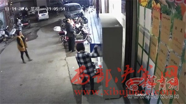 胡先生調(diào)取了事發(fā)時(shí)超市監(jiān)控視頻,華商報(bào)記者在視頻里看到:11月14日19時(shí)05分,一名婦女帶著小男孩走出超市,來到超市門口擺放的儲(chǔ)物柜取物。就在這名婦女剛拿出物品的一剎那,近兩米高的儲(chǔ)物柜突然倒下砸中兩人。巨大的儲(chǔ)物柜將孩子整個(gè)壓在了下面,婦女雙腿被壓住。周圍群眾幫助抬起了儲(chǔ)物柜。華商報(bào)記者注意到,從婦女取物到柜子倒下,事發(fā)經(jīng)過不到十秒鐘。