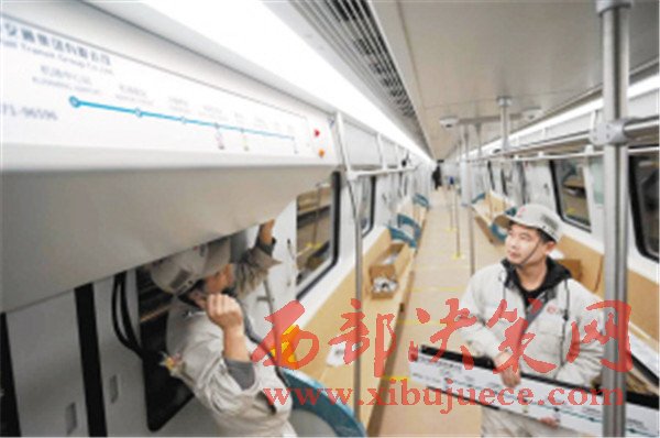 技術(shù)人員正在安裝地鐵6號(hào)線車廂設(shè)備。