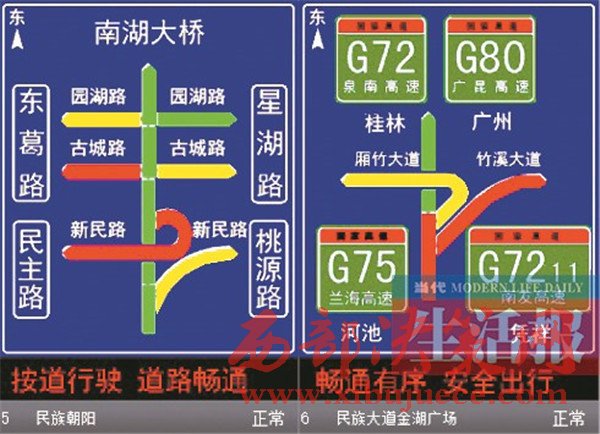 “至埌東客運(yùn)站旅行時(shí)間5分鐘”的提示,同時(shí)顯示周邊多條道路都是綠色……駕車在民族大道上會(huì)看到類似這樣的提示,這是南寧交警部門與高德地圖合作的成果。目前,高德地圖提供的實(shí)時(shí)路況交通信息已經(jīng)陸續(xù)上線南寧市交通誘導(dǎo)屏。在民族大道沿線的60塊誘導(dǎo)屏,均可以清楚地反映實(shí)時(shí)路況信息和道路擁堵?tīng)顩r。