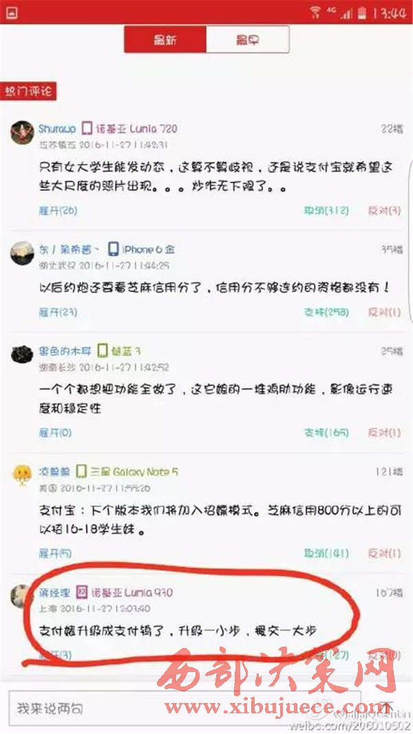網(wǎng)友的評論:支付婊升級支付,升級一小步,緩交一大步。