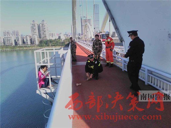 27日下午,柳州市廣雅大橋中段,有一名女子因感情問題想不開,翻越護欄想要輕生,民警和消防官兵趕到現場,經過2個多小時的努力,終于抓住機會將其救下。