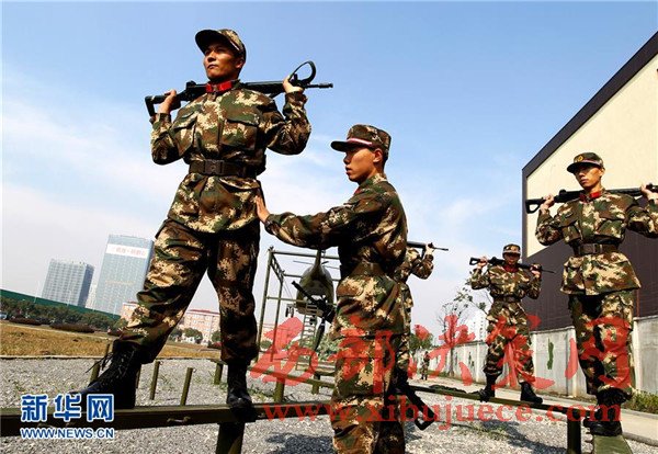 12月5日,艾麥爾·吾斯曼(左一)進行突擊訓練。武警上??傟犓闹ш犘卤B維吾爾族戰(zhàn)士艾麥爾·吾斯曼來自新疆維吾爾自治區(qū),今年從江南大學應征入伍。經(jīng)過嚴格的新兵訓練,艾麥爾·吾斯曼快速完成由大學生向合格軍人的“漂亮轉身”。