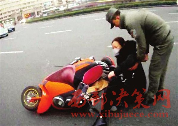西安一中年女子騎電動(dòng)車被撞 城管攙扶救助