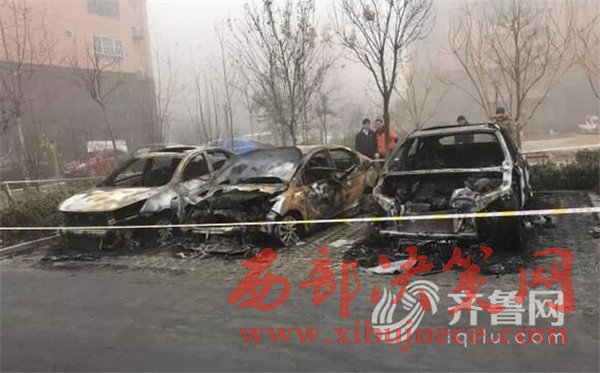 早晨六七點(diǎn)鐘,有居民發(fā)現(xiàn),停在小區(qū)樓下的幾輛汽車著火了。小區(qū)居民表示,當(dāng)時(shí)聽見響,還以為撞車了,一看原來是車著了,趕緊喊救火。