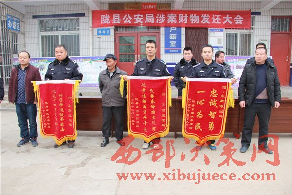 西部決策網(wǎng)訊(帥華鋒 杜杰 通訊員 邢亞洲)12月29日中午,隴縣公安局東南派出所召開贓物發(fā)還大會(huì),為群眾發(fā)還現(xiàn)金44620元,群眾放起了鞭炮送來感謝信和錦旗表示感謝。。