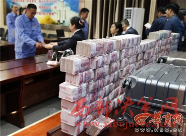 昨日上午9時20分,裝著1000萬現(xiàn)金的武裝押運車開到工地,安保人員和企業(yè)員工將10萬元一捆的百元大鈔碼出了一座“錢山”,看著眼前堆成小山似的現(xiàn)金,早早前來排隊的農(nóng)民工們也是興奮不已。