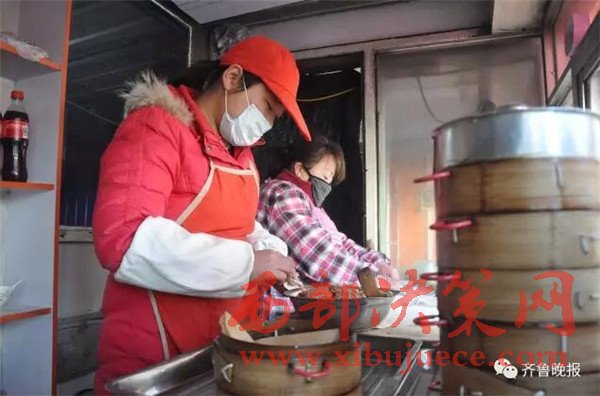 14日一大早,記者在無棣縣城找到了正忙著包小籠包的“用盡一生”。她本名趙平,無棣縣信陽鎮(zhèn)人,30歲,慈眉善目,笑起來有一種特別的吸引力。趙平的包子鋪其實就是一座簡易板房,而負(fù)責(zé)打掃這條街的70歲環(huán)衛(wèi)工程延新,休息之余喜歡來這里坐坐,喝點熱水,洗洗手,聊聊天。“主要感覺他掙這些錢實在不容易”,趙平說。