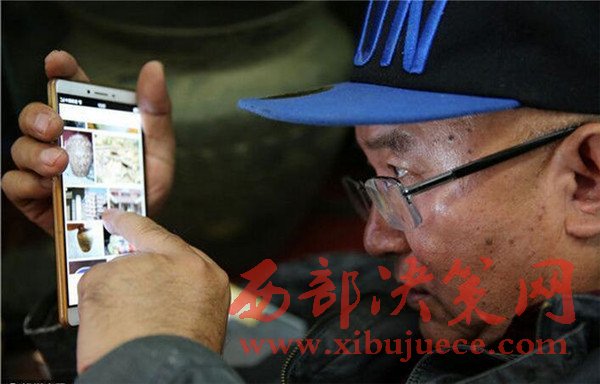 2016年9月21日,陜西榆林,劉福學(xué)通過微信等網(wǎng)絡(luò)平臺(tái)和收藏愛好者交流。