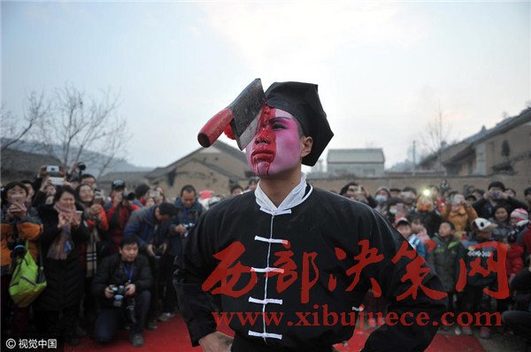 2017年2月3日,陜西隴縣東南鎮(zhèn)閆家庵村,一場“血社火”的表演正在進(jìn)行中。今年春節(jié),閆家庵村從大年初五開始連續(xù)三天進(jìn)行血社火表演,當(dāng)日是最后一天。