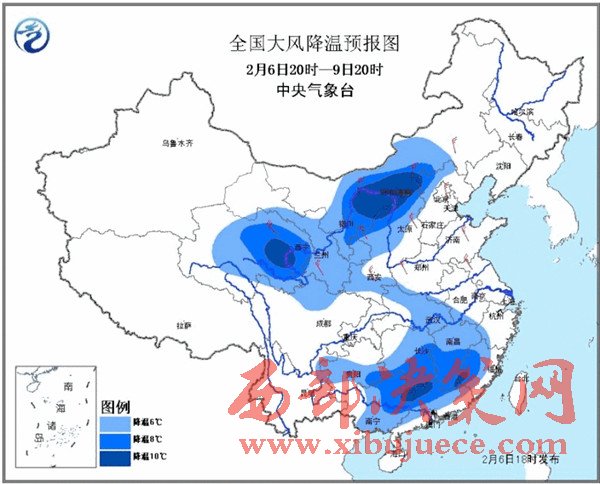 中央氣象臺(tái)預(yù)計(jì),6日夜間至9日,我國(guó)中東部大部地區(qū)都將自北向南將先后出現(xiàn)大范圍大風(fēng)降溫和雨雪天氣,平均氣溫將普遍下降4℃以上,其中,青海東部、陜西北部、內(nèi)蒙古中部、山西北部、貴州東南部、湖南中南部、江西中南部、福建西部、廣西北部和廣東北部等地氣溫將下降8℃以上,局地超過10℃!長(zhǎng)江以北地區(qū)并伴有4——6級(jí)偏北風(fēng),東部和南部海區(qū)風(fēng)力有7——9級(jí)。