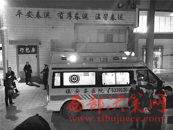 2月4日19時55分,重慶北開往呼和浩特東的K1536次緩緩地進站停妥,如同往常一樣,站臺的工作人員有條不紊地組織著K1536次旅客乘降工作。“西安端乘降完畢……等等,1號,K1536次1號臥鋪車廂列車員要交個病人下車醫(yī)治,是個孕婦,你過來下”!當班的客運值班員王麗英,從站臺中部邊奔跑著,邊詢問了解情況。正在站臺盯控值班的黨總支書記趙鵬、車站站長何曉輝、安全員呂建軍、客運主任冀文娟立即緊隨上前了解情況,隨即通知客運員許劍鋒立即撥打120,詳細告知情況,安排好隨車醫(yī)護人員,并安排站臺工作人員準備好椅子、被褥等簡單的輔助用品。將兩名旅客接下,等待救護車的時候了解到,丈夫譚超、妻子鐘紅英都是重慶人,妻子已經(jīng)懷孕8個多月,預(yù)產(chǎn)期在2月20日左右,帶著2歲半的大兒子,原計劃坐火車從重慶到寶雞生產(chǎn),沒想到剛到鎮(zhèn)安站停車期間突然感到身體不適,有臨盆現(xiàn)象,不得已才要求下車。