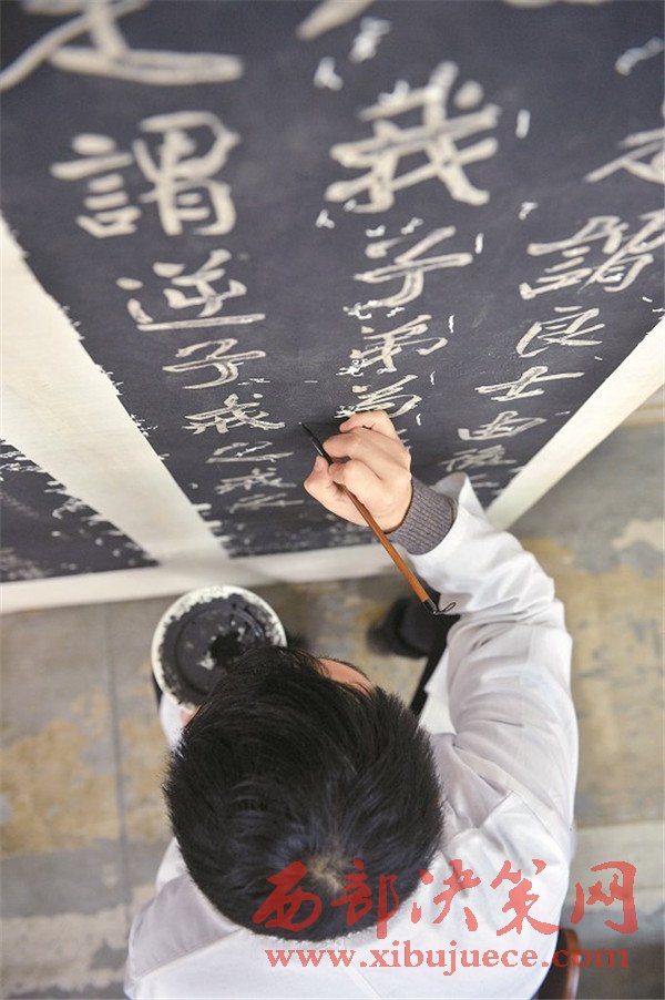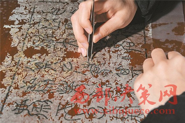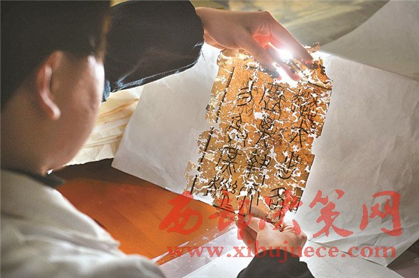 修復師經(jīng)仔細揣摩,用最接近古拓片原本的墨色來修復殘損部分。