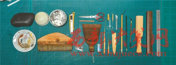 修復所使用的馬蹄刀、三角刀、竹管排筆等各種工具。