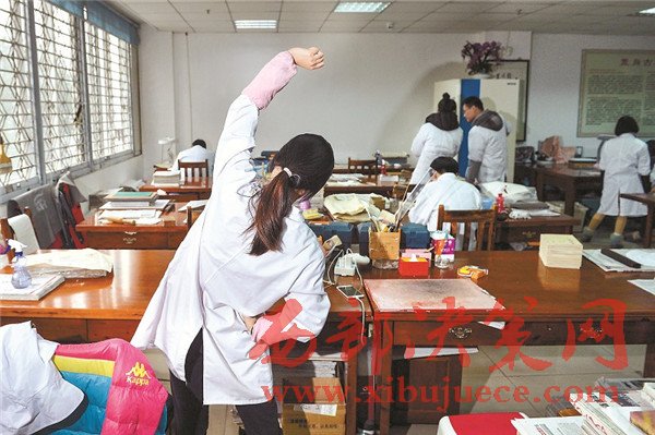 古籍修復工作現(xiàn)在仍是冷門行業(yè),修復師們頭上頂著“大國工匠”的光環(huán),背后卻有很多的艱辛。古書拆裝過程中會遇到大量陳年的灰塵、蟲卵等,打噴嚏、犯鼻炎、過敏等現(xiàn)象時有發(fā)生;保持伏案姿勢一整天,幾乎所有的修復師都有頸椎和腰椎疾病。而古籍修復從業(yè)人員的待遇并不高,對年輕人缺乏吸引力。每年會有許多實習生來到中心實習,但實習結(jié)束,不少學生就離開這個行業(yè),能夠留下來的,寥寥無幾,更多人把它當作副業(yè)或者興趣愛好。