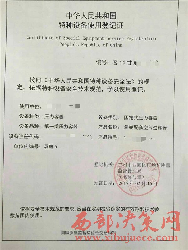 2月16日,蘭州市西固區(qū)政務服務中心市場和質(zhì)量監(jiān)督管理局注冊登記中心向轄區(qū)設備使用單位發(fā)放了西固區(qū)第一套《特種設備使用登記證書》,至此,經(jīng)過各相關部門緊鑼密鼓的準備,該業(yè)務正式在中心窗口開展受理審批工作。
