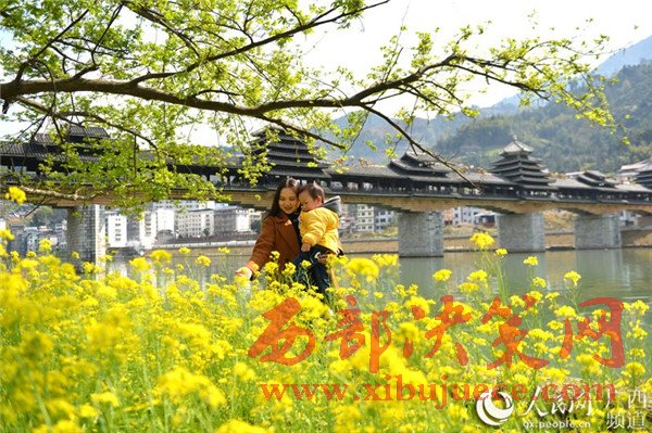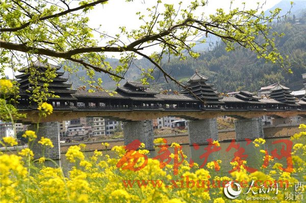 春暖花開時節(jié),廣西龍勝各族自治縣民族風雨橋旁的油菜花競相綻放,風雨橋在油菜花的點綴下美不勝收,形成了一道美麗的春天景致,充滿著濃郁的春天氣息,吸引眾多游客前來觀賞拍照。