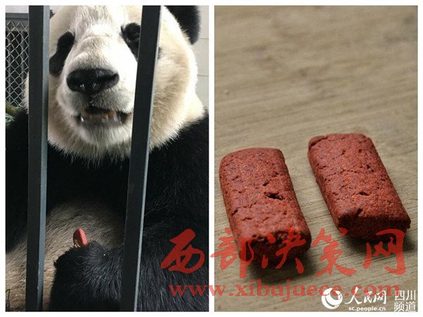 熊貓“寶寶”和心愛的餅干。