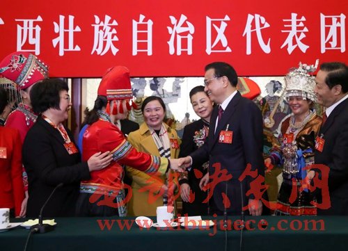 【李克強(qiáng)在廣西團(tuán)巧借“劉三姐”祝福全國(guó)女同胞】三八婦女節(jié)這天,李克強(qiáng)來(lái)到廣西代表團(tuán)參加審議報(bào)告。他首先祝在場(chǎng)的女代表及女同胞節(jié)日快樂(lè)。總理說(shuō):“廣西是劉三姐的家鄉(xiāng),她的歌聲至今余音繚繞,代表了女同胞美好的形象。我在這里向你們,并通過(guò)你們向全國(guó)女同胞致以節(jié)日的問(wèn)候和衷心的祝福。”