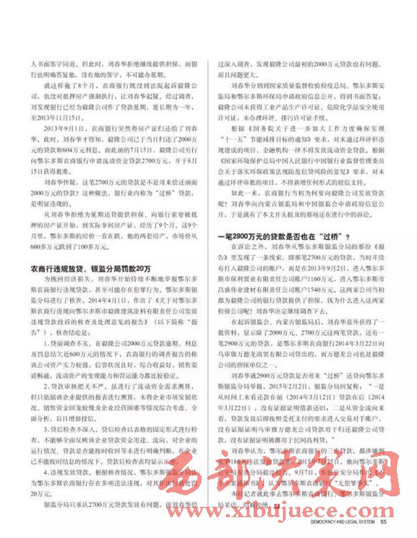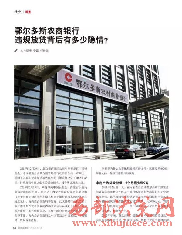 維權(quán)中劉春華又向內(nèi)蒙古自治區(qū)紀(jì)委進(jìn)行了實名舉報,鄂爾多斯農(nóng)商銀行多次違法發(fā)放貸款一案內(nèi)蒙古自治區(qū)紀(jì)委高度重視。經(jīng)內(nèi)蒙古自治區(qū)紀(jì)委監(jiān)督內(nèi)蒙古銀監(jiān)局對鄂爾多斯農(nóng)村商業(yè)銀行違規(guī)放貸事實進(jìn)行了核查、再查等環(huán)節(jié)之后確定劉春華舉報違法放貸2000萬、2700萬、2900萬屬實。