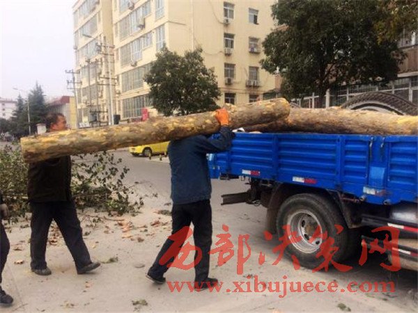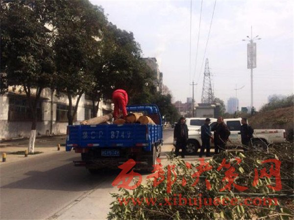 據(jù)了解,砍樹的人講這個(gè)地方要做工程,有人請(qǐng)他們把這些樹木砍了。所砍木料被賣給了木材加工廠,現(xiàn)場(chǎng)的車輛及裝車人員都是渭濱區(qū)高家村某木材廠的人員??硺洮F(xiàn)場(chǎng)未發(fā)現(xiàn)有市政和園林環(huán)衛(wèi)部門的管理人員。