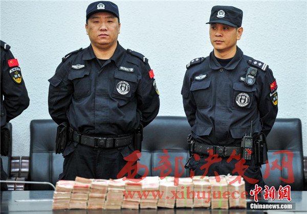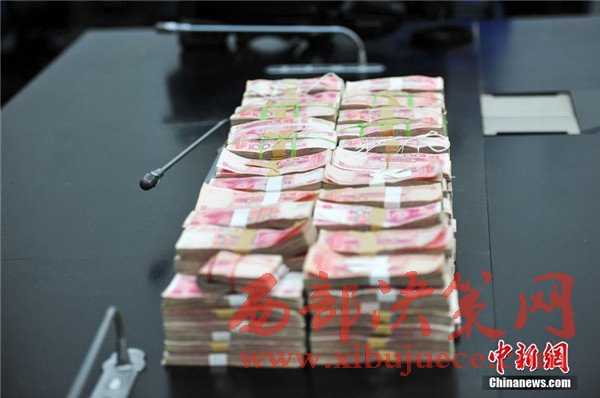 沈陽警方現(xiàn)場展示被盜贓款。