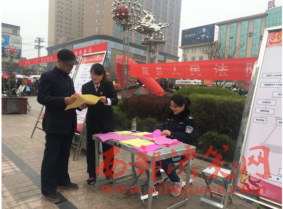 西部決策網-西部大開發(fā)(帥華鋒 杜杰 通訊員 張蕾)4月6日上午,隴縣第二十三個法治宣傳月啟動儀式在隴州廣場舉行,隴縣法院組織干警參與了當日的普法宣傳活動。