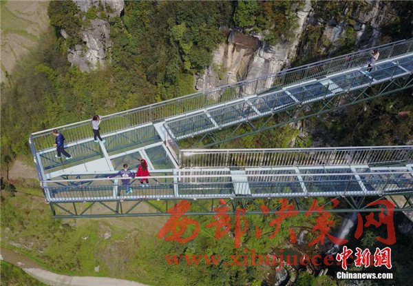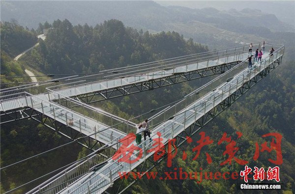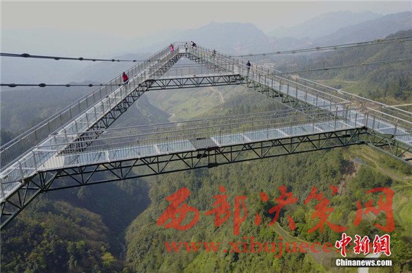 4月6日,重慶一景區(qū)內(nèi)“天空懸廊”吸引眾多市民前往體驗。懸廊成“A”字形,橋面鋪設(shè)全透明玻璃,由于懸空于近300米高的懸崖峭壁之上,又沿懸崖向外延伸在80米的空中,因此取名為“天空懸廊”。相比美國科羅拉多觀景廊橋向外懸挑21米,天空懸廊向外懸挑80米更為驚險刺激。目前,該項目正在申請吉尼斯世界紀(jì)錄。