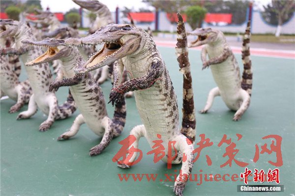 其中鱷魚標本32件為站姿,45件為爬行姿態(tài),最大的標本長度近2米。