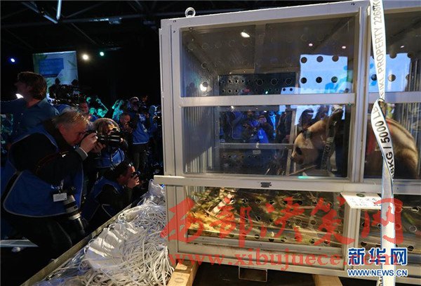 4月12日,在荷蘭首都阿姆斯特丹史基浦機(jī)場(chǎng),記者們拍攝大熊貓。