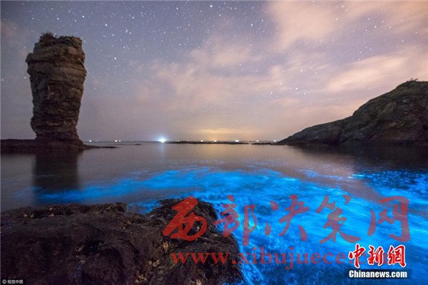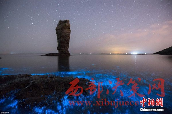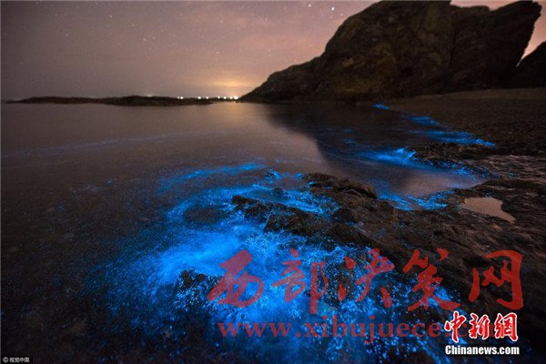 2017年4月27日凌晨,大連小黑石海域又現(xiàn)“熒光海”奇觀。圖片來源:視覺中國