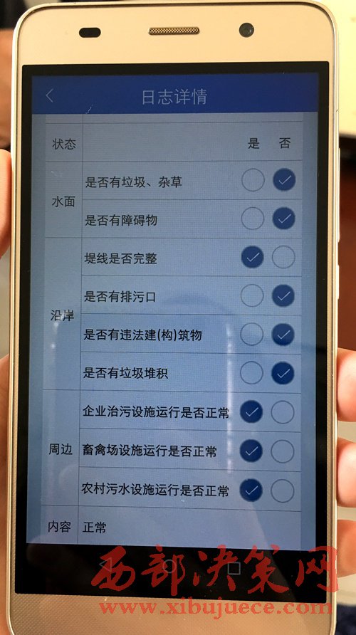 “最初,‘河長’巡河時(shí),還要隨身帶上一只油性筆、一本登記簿等,將巡查時(shí)發(fā)現(xiàn)的問題作好記錄,再向上級(jí)部門匯報(bào),如今,只需要帶上一部智能手機(jī)就行了。”李劍勇笑著晃了晃手機(jī)。