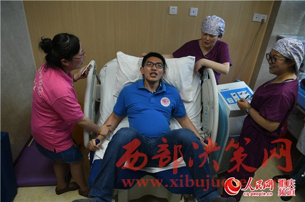 “?。√鬯览?!”“快,暫停一下,暫停一下!……生孩子到底有多痛?在母親節(jié)來臨之際,重慶婦幼保健院邀請10對家庭的準(zhǔn)爸爸體驗分娩疼痛,用感同身受致敬母親節(jié)。在現(xiàn)場,準(zhǔn)爸爸們通過分娩疼痛體驗儀體驗1級到10級疼痛,這個過程雖然只有兩三分鐘,他們在最初階段還故作淡定,而在疼痛高潮來臨時已是緊閉雙眼、面部扭曲、嗷嗷直叫。還有幾位準(zhǔn)爸爸,在體驗到8級時,就已經(jīng)雙腿抽筋,不得不示意挑戰(zhàn)失敗。參加完體驗的“孕爸”們紛紛感慨女人生孩子不易,會更加感恩母親的生育之痛,更加關(guān)心疼愛老婆。