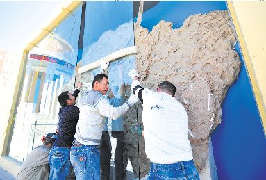 哈密科考隊(duì)隊(duì)員周紅嬌介紹,從2006年起,科考隊(duì)在哈密魔鬼城一帶搜尋早白堊紀(jì)翼龍以及其它恐龍化石,2016年10月,科考隊(duì)在魔鬼城發(fā)現(xiàn)了這個化石界的“大塊頭”。當(dāng)時我們是在一處坍塌的雅丹地貌上發(fā)現(xiàn)的,已被風(fēng)化得很嚴(yán)重,如不及時保護(hù),很可能會受到更大損害。在與哈密博物館協(xié)商后,于當(dāng)年11月16日,將其運(yùn)送到哈密博物館,今年4月份開始修復(fù)。”周紅嬌說,修復(fù)時,先使用機(jī)械設(shè)備清理化石周圍的圍巖,因?yàn)轱L(fēng)化比較嚴(yán)重,表層比較脆弱,因此修復(fù)時要十分小心,最后用氣吹和手捻手動清理。清理完畢后,會噴涂一層保護(hù)膠,用來保護(hù)化石。