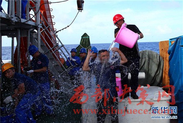 5月23日,首次下潛人員深潛歸來接受“洗禮”。