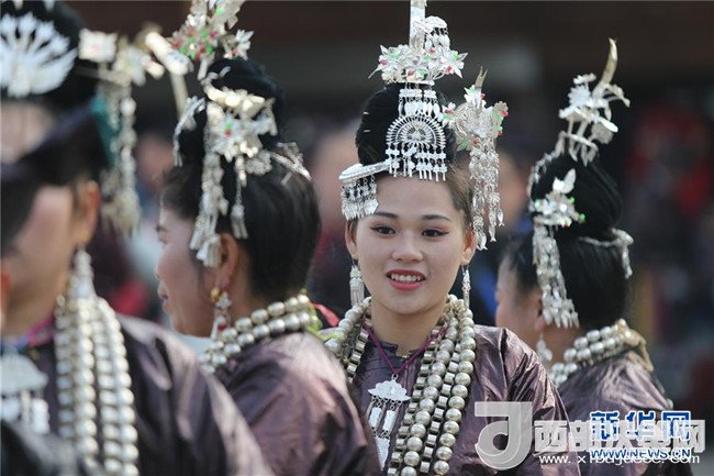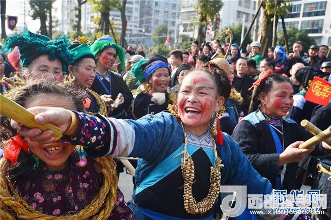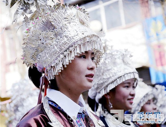 12月18日,身著盛裝的侗族同胞參加巡游。當日,2017中國侗年暨第八屆黎平·中國侗文化旅游節(jié)“非遺”文化巡游在貴州省黔東南苗族侗族自治州黎平縣舉行,當?shù)囟弊逋麣g聚一堂,喜迎侗年到來。(林世禎 攝)