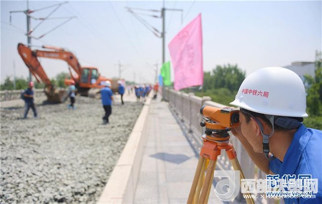 石濟(jì)客專引入石家莊樞紐工程的建設(shè)人員在進(jìn)行測量作業(yè)(6月15日攝)。這一工程預(yù)計今年12月底全線通車,建成后石家莊至濟(jì)南乘坐高鐵只需90分鐘左右。