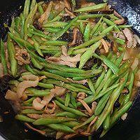 3. 雞蛋炒成塊兒。五花肉切絲,加少許干淀粉和蛋液滑炒制熟。豆角、香菇切絲備用。