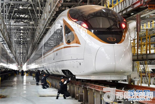 12月27日,天津動(dòng)車客車段動(dòng)車運(yùn)用所工作人員對(duì)“復(fù)興號(hào)”動(dòng)車組進(jìn)行巡檢,為鐵路調(diào)圖做好安全保障。從鐵路部門了解到,全國鐵路將于12月28日起實(shí)施新的列車運(yùn)行圖。(楊寶森 攝)