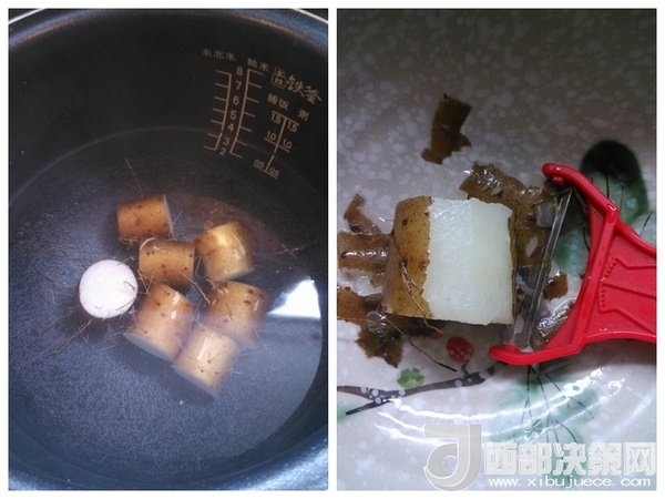 1、山藥沖洗干凈,切成比較短的均勻小段,帶皮到鍋里面煮到半熟;2、刮掉外皮,沖洗干凈粘液;