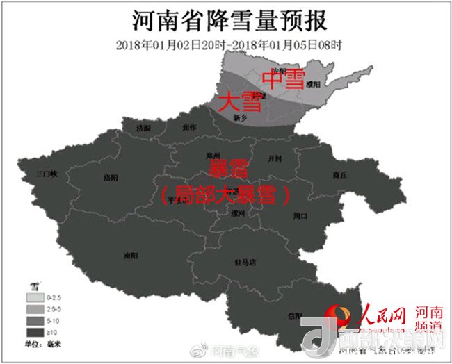 人民網(wǎng)鄭州1月2日電(戚藝芳)瑞雪兆豐年,河南將迎2018年首場強降雪。據(jù)河南省氣象臺最新消息,從2日夜間河南將開啟暴雪模式!-12℃+5級大風+25cm積雪,可謂是入冬以來范圍最大、強度最強的降雪過程。